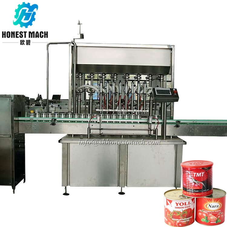 The 8 head filler ketchup packing machine is an extremely flexible filler capable of filling accurately any viscous liquids. the piston filler is ideal for filling liquids, semi-solids and products with particulates. The tomato paste tin can filling machine is commonly used in the food service, cleaning and specialty chemical, pharmaceutical, cosmetic and personal care industries for various filling projects.
